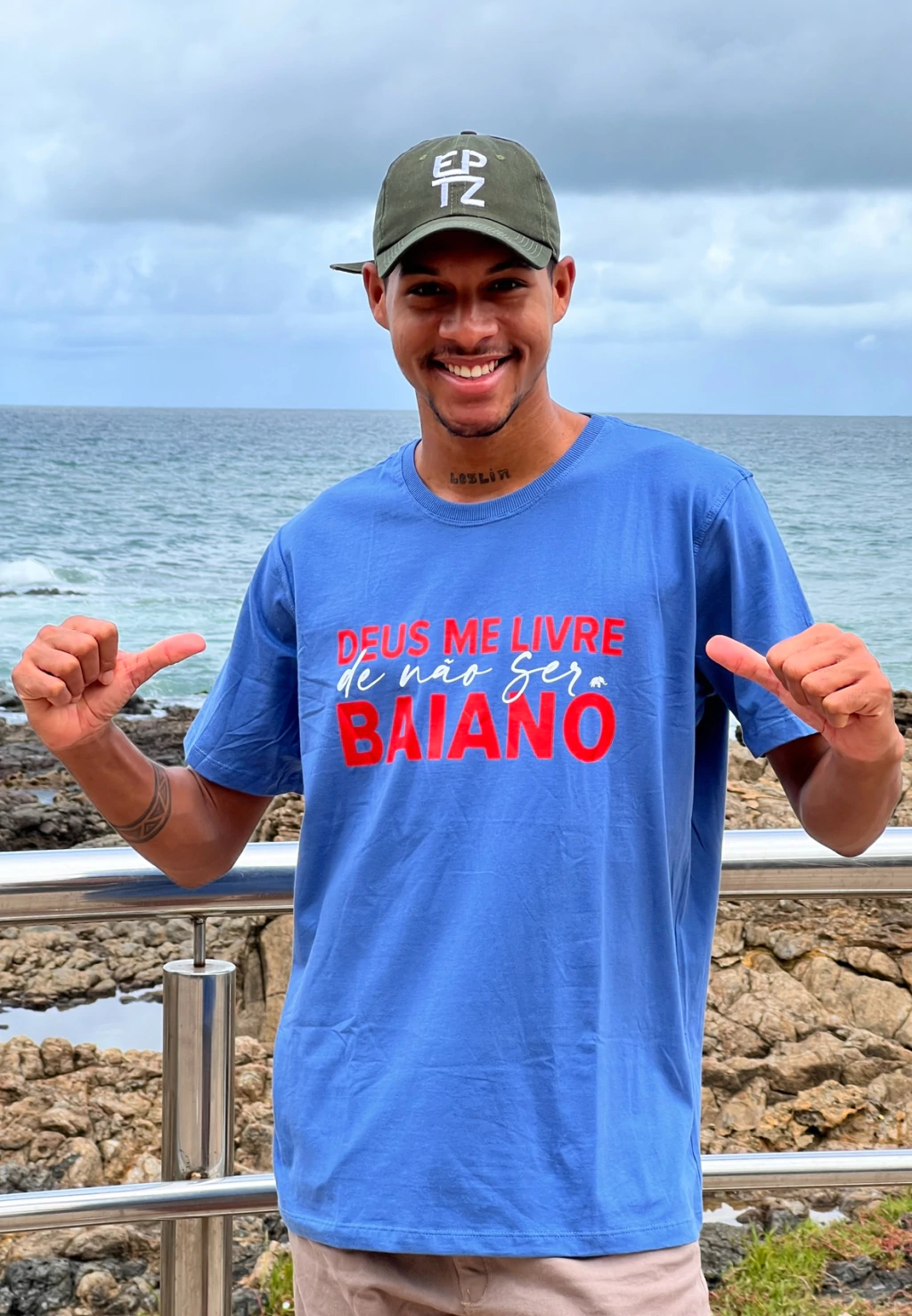"Deus me livre de não ser baiano" - uma frase que ressalta o orgulho e a alegria de pertencer a uma cultura tão vibrante e única como a nossa. Esta camisa é mais do que uma simples peça de roupa, é uma celebração da nossa identidade e da nossa essência.