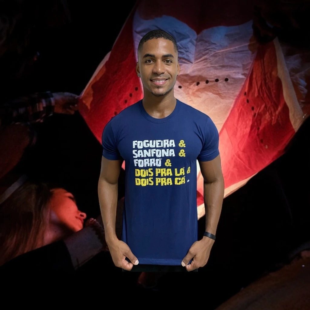 Com a energia contagiante do São João, essa camisa traz o melhor da cultura nordestina e baiana, unindo as tradições de fogueira, sanfona e aquele forró gostoso que não pode faltar. É a peça que vai te deixar pronto para dançar dois pra lá, dois pra cá e se jogar na festa com estilo e conforto!