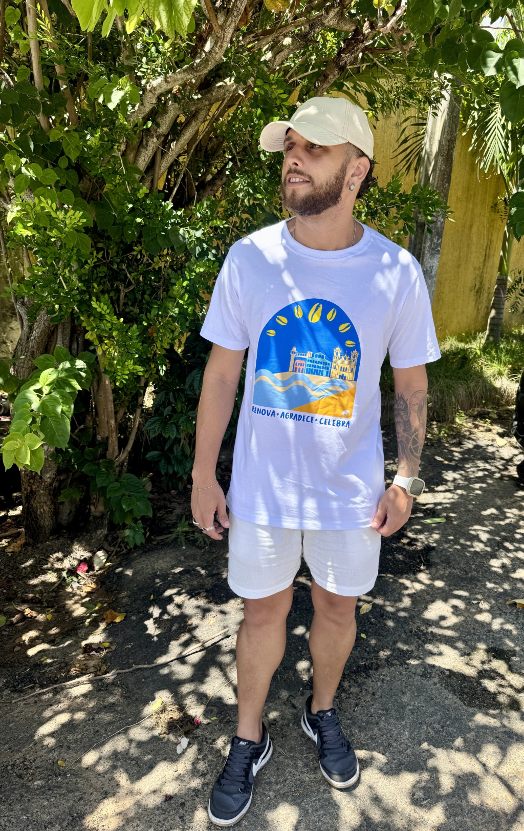 Uma das camisas da coleção de fim de ano da Empatizee, "RENOVA + AGRADECE + CELEBRA", é a escolha perfeita para marcar a virada do ano e o início de um ciclo de festas cheio de energia positiva. Além de ser um símbolo de renovação, gratidão e celebração, ela traz o espírito vibrante da Bahia, com um design que reflete a força da nossa cultura.